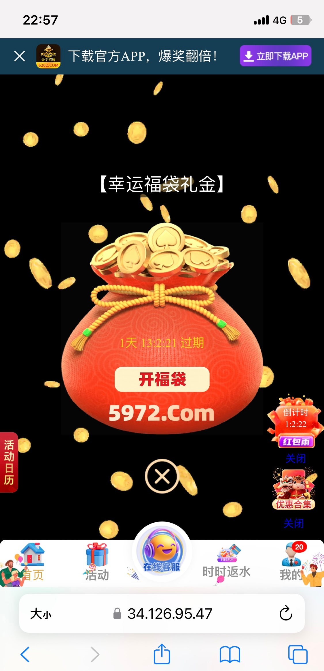 前两天领了鸿运金 今天上去又有福袋了 我差不多15天没充了 网址8733.com。充值过的去看下 没有充值直接无视