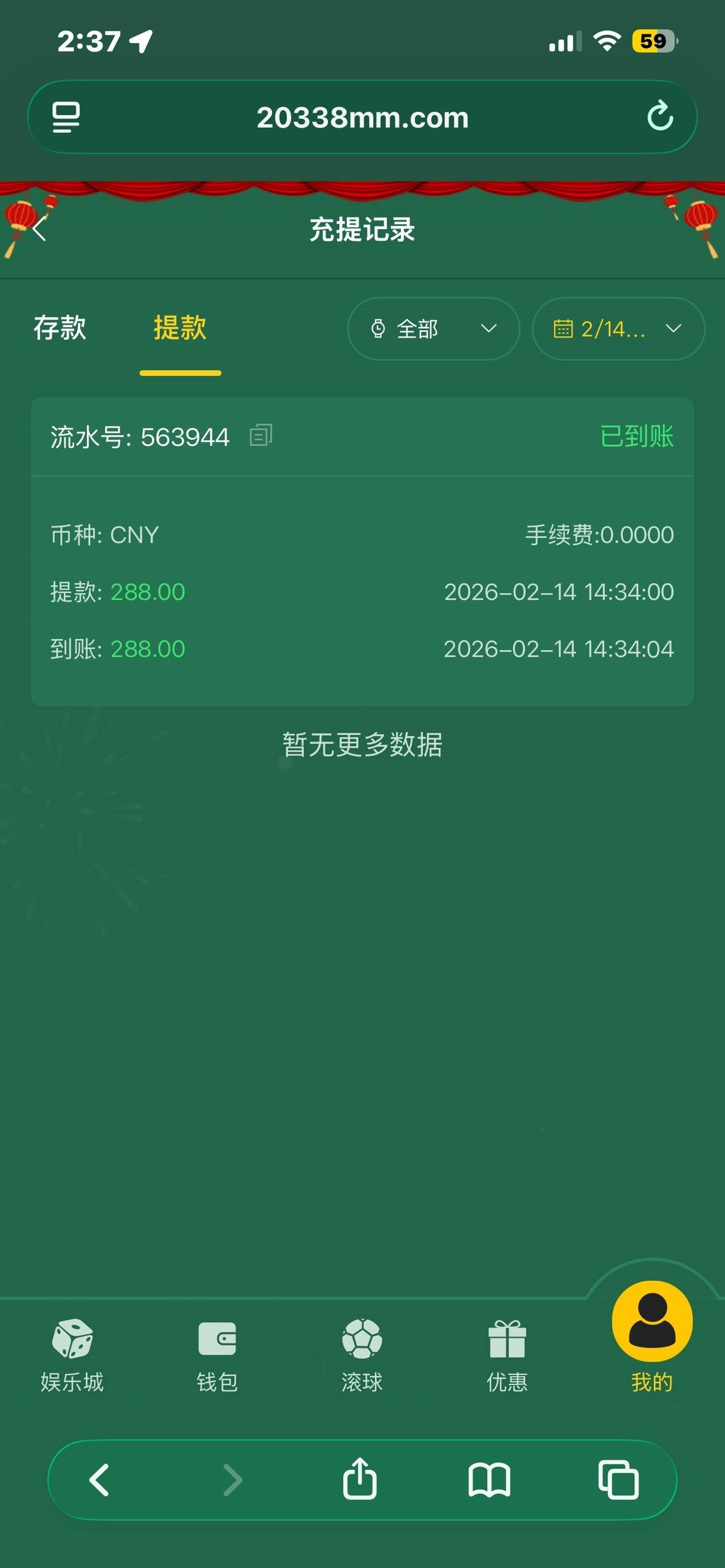 拿了上个月回馈打完后,有免费可以领18元回归,差点打出来,后面存了30打糖果博大炸水了,炸了500多,可惜只能提款288元